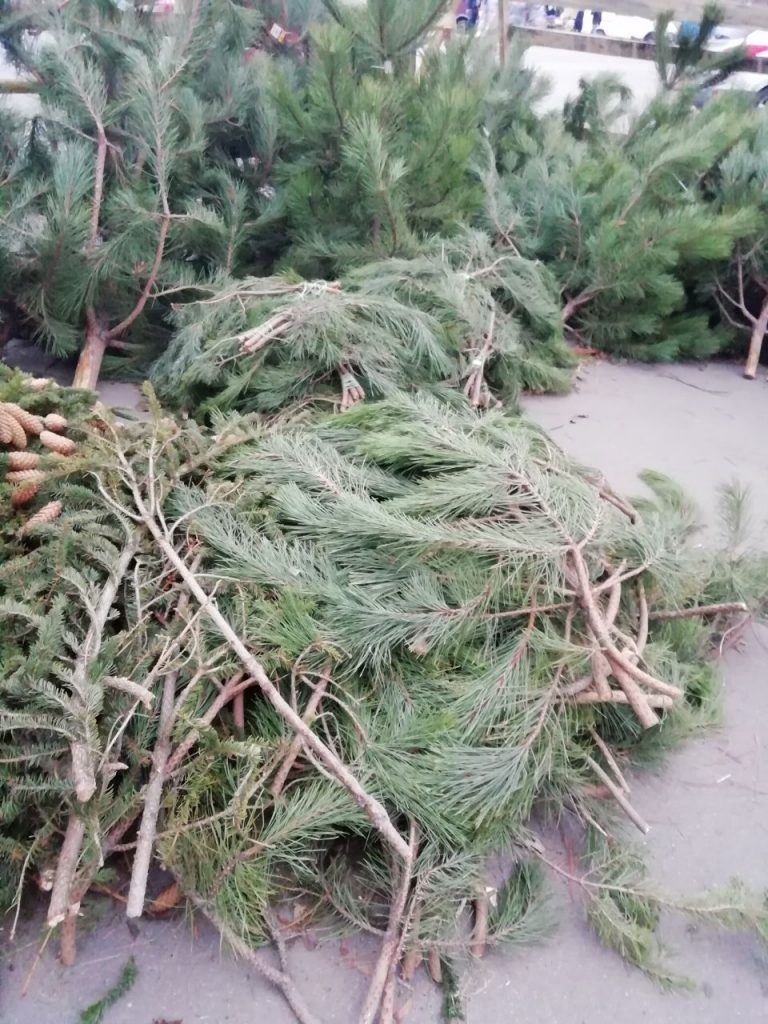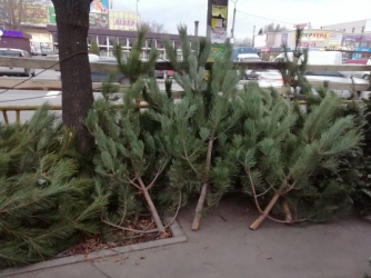 Как рассказала реализатор Марина, ели и сосны подвозят каждый день, и будут подвозить еще долго. На каждом дереве есть печати, которые подтверждают, что елки были срублены законным путем.