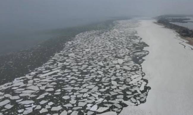 В Бердянске запечатлели на видео Азовское море, покрытое слоем льда. Завораживающие пейзажи сняли с высоты птичьего полета.