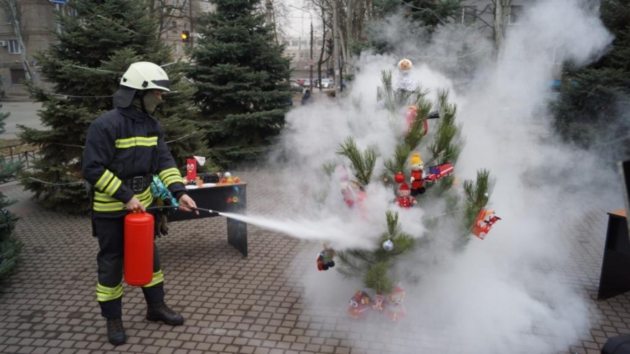 Запорожские спасатели учили журналистов правильно зажигать елки