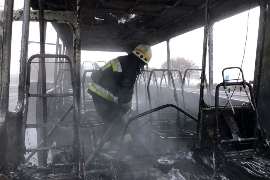 Пассажирский автобус загорелся во время движения по трассе Днепр - Кривой Рог 20 декабря. Об этом сообщил пресс-центр Государственной службы по чрезвычайным ситуациям.