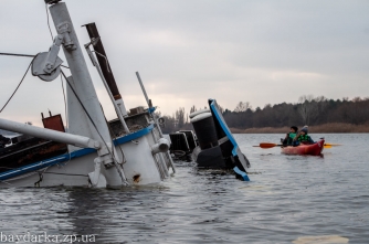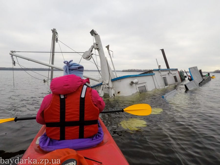Баржа, которая затонула у Разумовки, уже заинтересовала охотников за металлом.