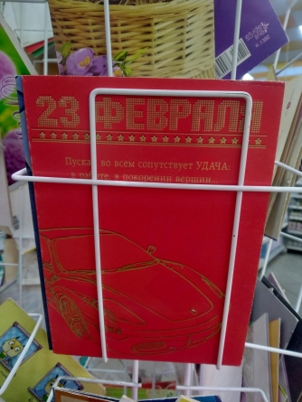 В украинском супермаркете обнаружены открытки с поздравлениями мужчин с 23 февраля. Как известно, в нашей стране "День советской армии" уже давно не празднуется, его почитают в России. Журналистка Татьяна Наконечная утверждает, что поздравительные открытки продаются в супермаркете "Фуршет" на Нивках.