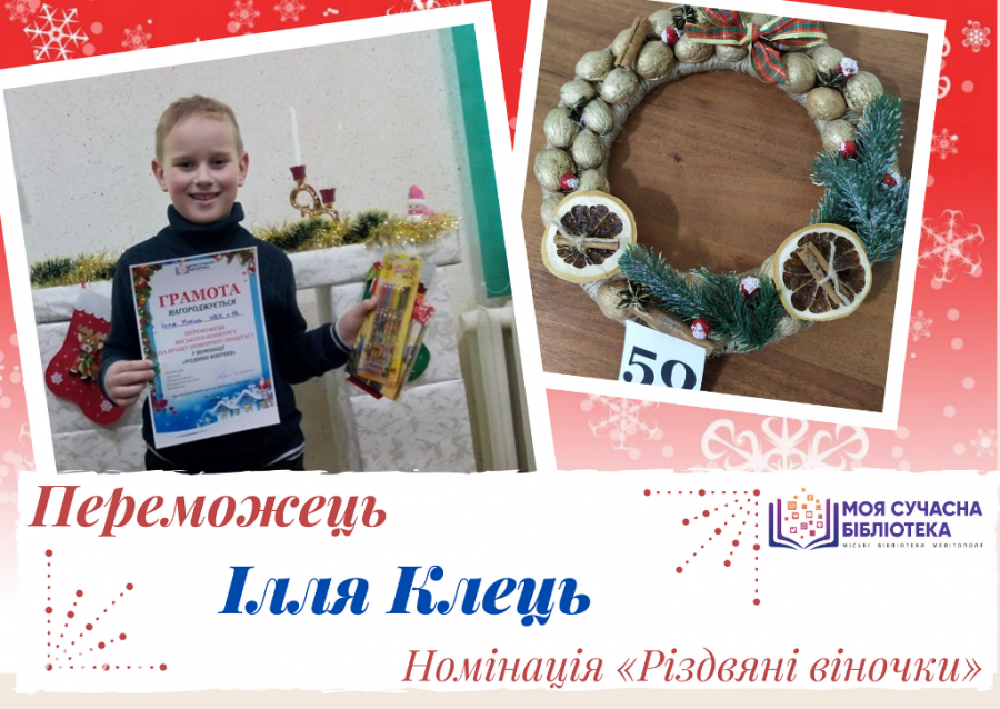В изготовлении рождественских веночков лучшими стали Тимур Маяцкий (ООШ №4), Илья Клец (УВК №16), Артур Потапов (начальная школа №3). Гран-при в этой номинации получил ученик ООШ №4 Остап Поточняк.