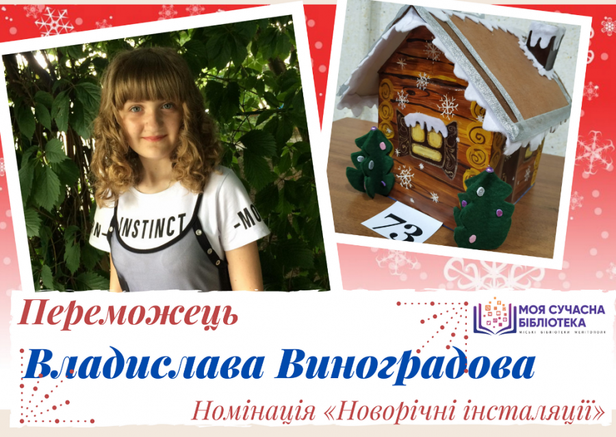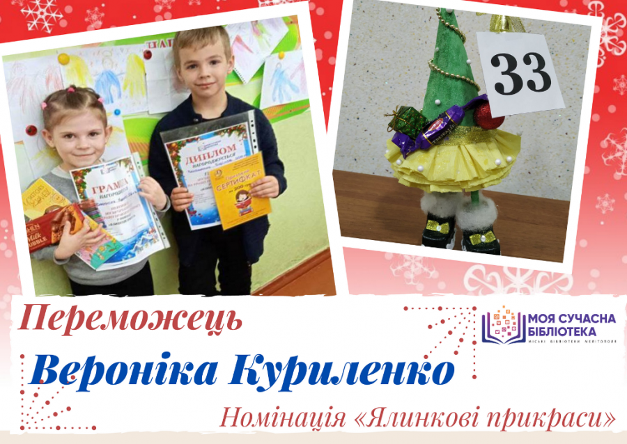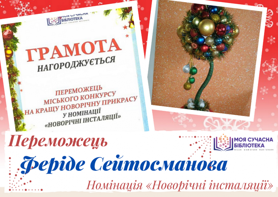 Среди новогодних инсталляций больше всего членам жюри понравились работы Софии Вариной (УВК №16), Владиславы Виноградовой (лицей №5), Назара Глотки (начальная школа №2), Фериде Сейтосмановой (СШ №23). Гран-при получила ученица ООШ №15 София Мищенкова.