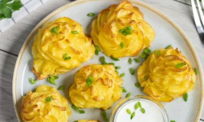 Французские картофельные завитки - отличный гарнир к блюдам из мяса и морепродуктов. По желанию перед выпечкой завитки можно посыпать кунжутом или измельченными грецкими орехами.