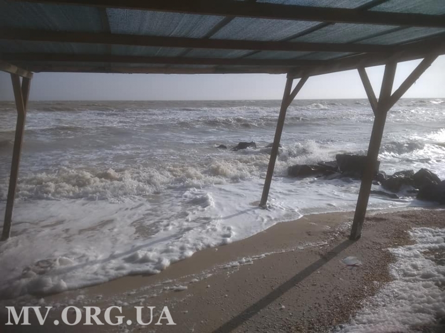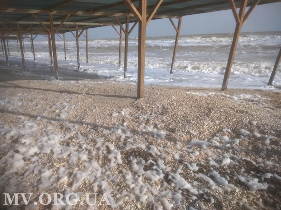 Кирилловский берег уже успел пережить сильные ветра и шторм, нанесший поправимый, но очень большой ущерб. Теперь море почти успокоилось. Сегодня на одном из кирилловских пляжей обосновались лишь яркое солнце и небольшой ветер, нагнавший на берег редкую пену.