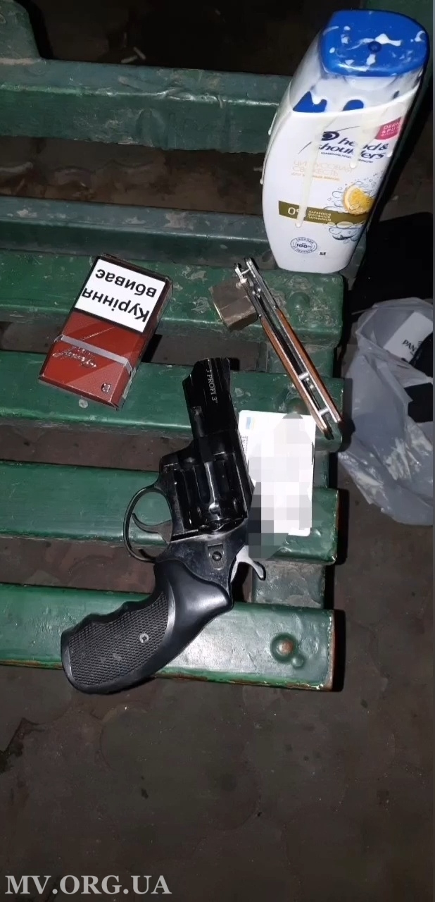 Во время поверхностного осмотра у мужчины обнаружили пистолет, нож и похищенные вещи из супермаркета.