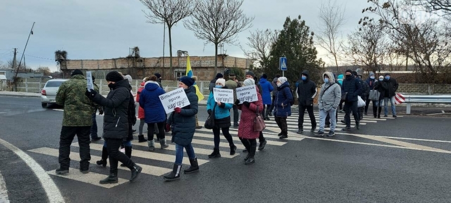 Около двух сотен жителей нескольких населенных пунктов Вольнянского района сегодня, 12 января, перекрыли трассу Харьков-Симферополь, требую остановки строительства карьера.