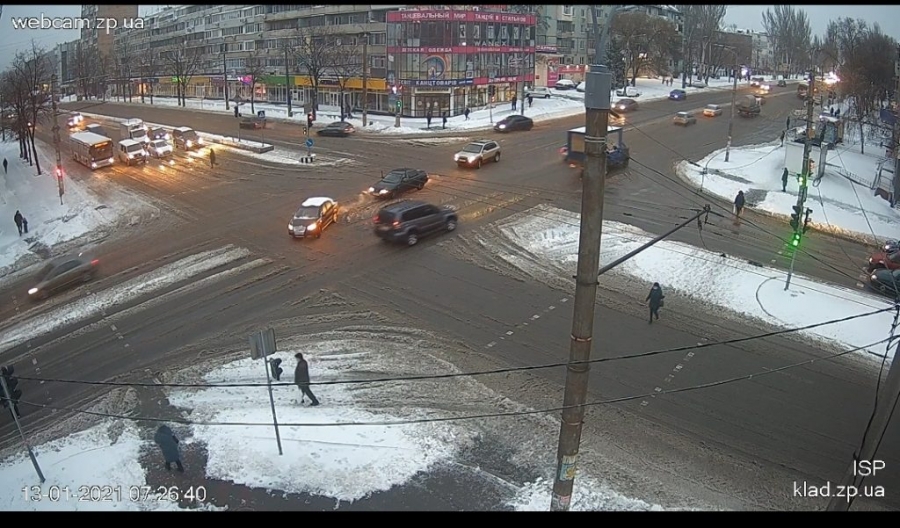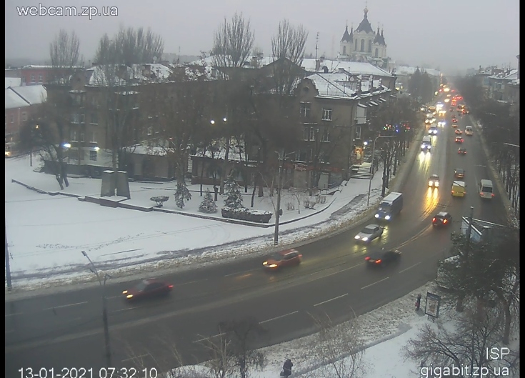Проспект Соборный, ул. Победы, Прибрежная автомагистраль — дороги чистые. В тоже время в спальных районах ситуация на дорогах дорогах сложнее — там движение затруднено — присутствует кашица из мокрого снега. Очевидно снегоуборочная техника ещё не все районы отработала.
