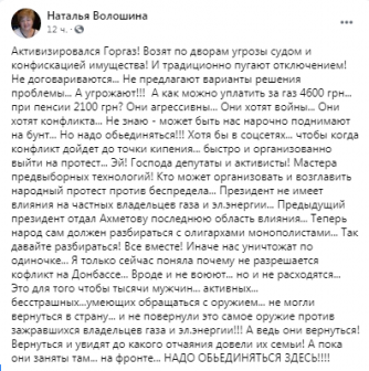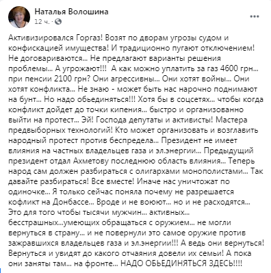 Вчера, жительница Запорожья Наталья Волошина публиковала пост в Facebook в группе "Типичный Шевчик" о том, что представители от горгаза развозят по дворам угрозы судом и с конфискацией имущества. Также, традиционно пугают отключением газа.