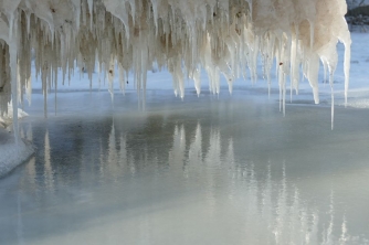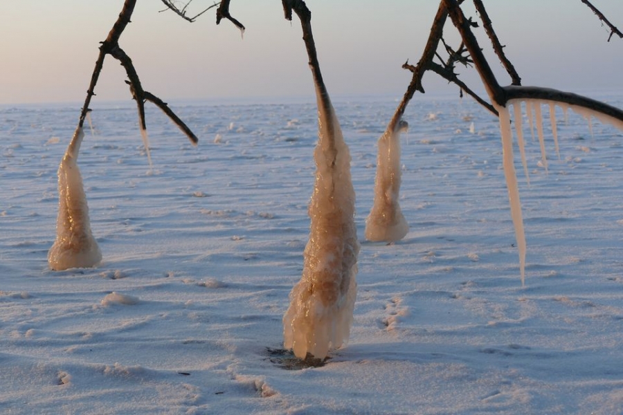 Так, у Каховского водохоранилища морозы создали неповторимые экспонаты, фотографии которых вызвали восторг у пользователей сети. Некоторые из сталактитов достигали в длину 2-3 метра.