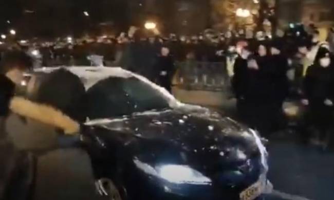 В Москве протестующие разгромили автомобиль с мигалкой: водителю выбили глаз (видео)