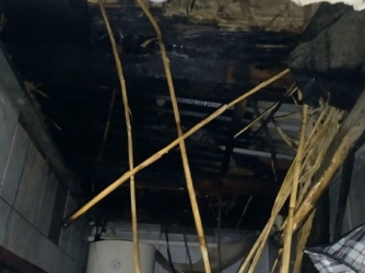 Прибыв на место происшествия, спасатели установили, что в ванной комнате дома горит деревянное перекрытие крыши на общей площади 0,5 кв. м.