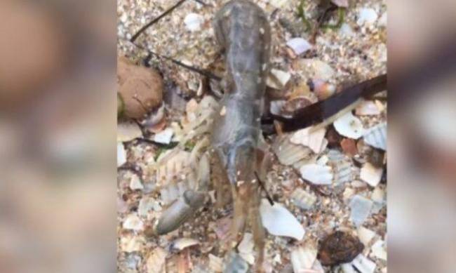«Увидела такого зверя на берегу. Вопрос к знатокам — что это? На креветку не похоже. Больше смахивает на рака, судя по клещням. Длина приблизительно 6 см», — пишет девушка.