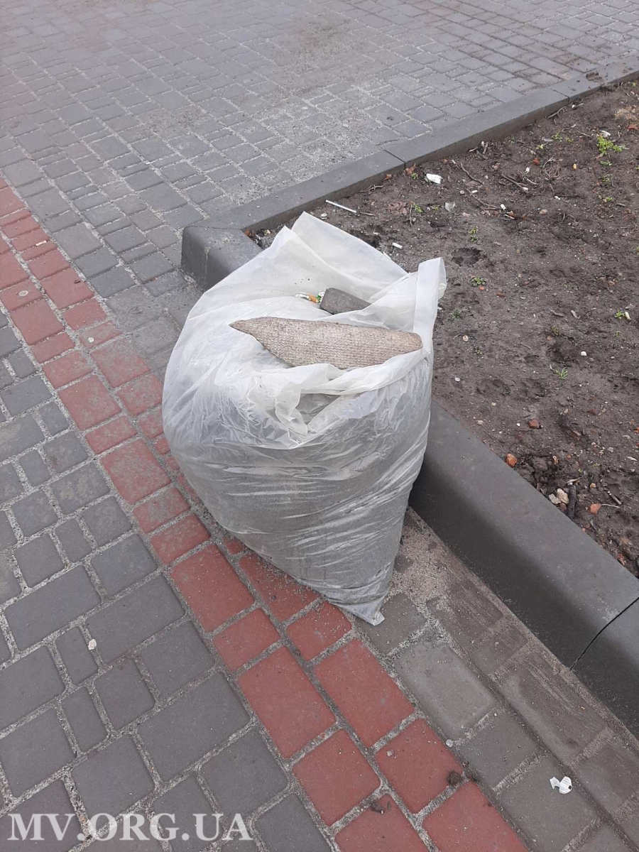 При этом часть мешков уже разорваны, а смесь рассыпана по земле – дождем ее просто размоет. А часть мешочков недобросовестные горожане используют вместо мусорок, складывая прямо на верх пусты стаканчики из-под кофе и окурки.