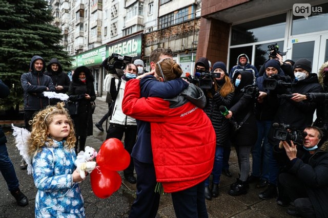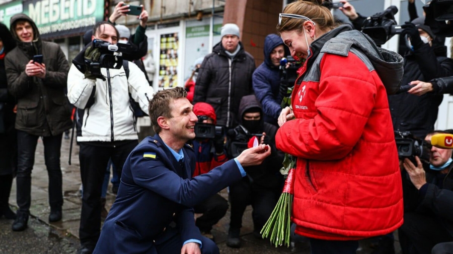 В Запорожье спасатель Владислав необычным способом сделал предложение любимой накануне Дня Валентина, 12 февраля. Работник ГСЧС сделал предложение руки и сердца во время служебных тренировок.