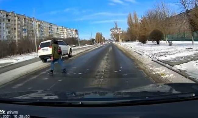 За миг до наезда: в Запорожской области водитель спас пешехода