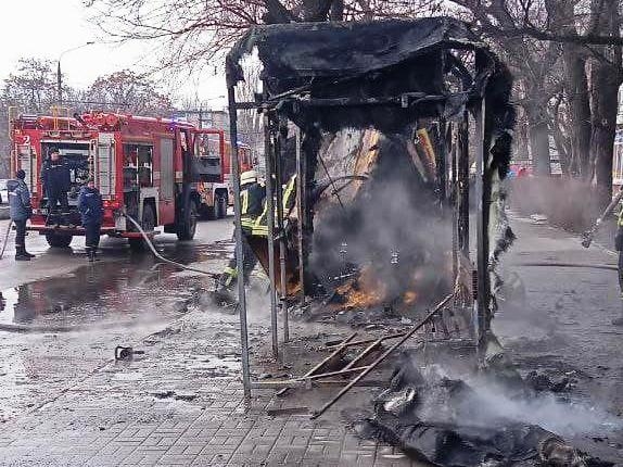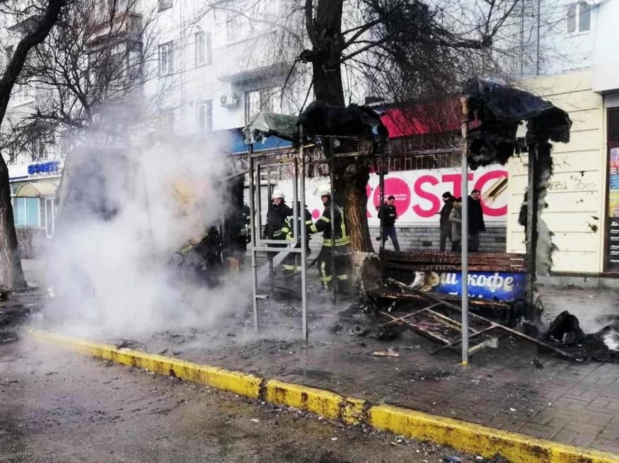 Прибыв на место происшествия, спасатели установили, что горит торговый киоск на общей площади 10 кв. м.