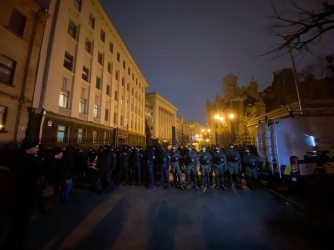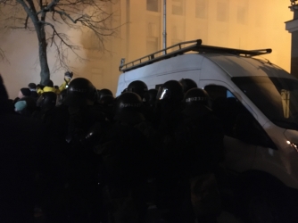 "Весь квартал перекритий. Скрізь автозаки, та «космонавти» у збруї. Не вистачає тільки танків та винищувачів.Народ не пускають до свого слуги..."
