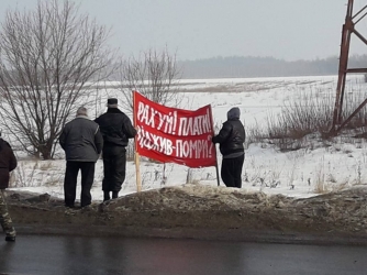 В селе Барвинок рядом с Ужгородом люди перекрыли дорогу. Здесь они протестуют против повышения тарифов на коммуналку.