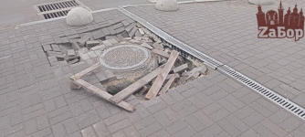 В центре Запорожья вокруг люка обвалилась "свежая" плитка (фото)