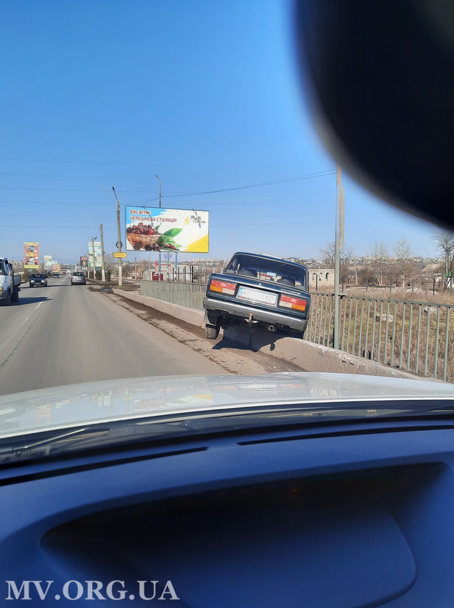 В Мелитополе автомобиль повис на бордюре (ФОТО)