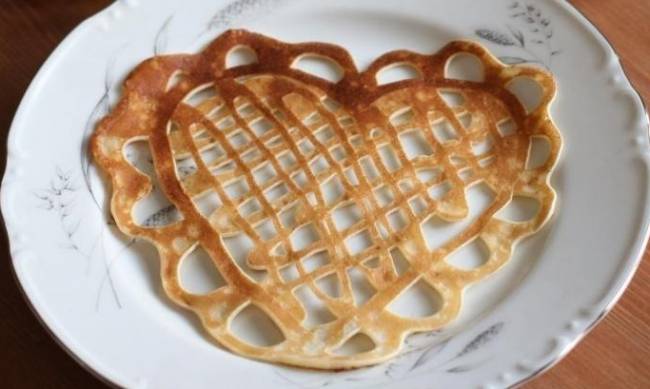 Эти блины из бутылки по вкусу совсем не отличаются от привычных. Вся хитрость ажурных узоров заключается в том, что на сковороду выливаем тесто из бутылки через небольшое отверстие.