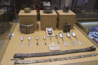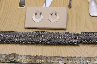 Итак, лунный металл" - это серебро. И на выставке представлено 19 предметов из коллекций музея. Здесь есть украшения, сувениры и столовые приборы.