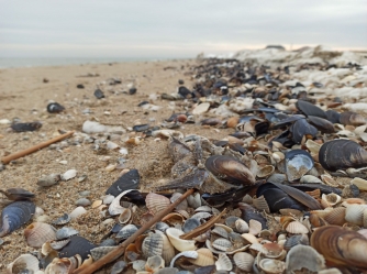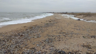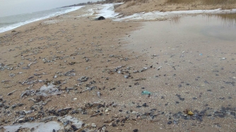 Сегодня 13 марта журналисты обнаружили, что Азовское побережье местами усеяно мертвым бычком.