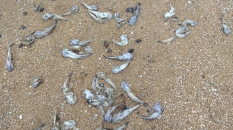 Рыбу выкинуло на берег одного из пляжей Новопетровки, Бердянского района. В некоторых местах побережье буквально усеяно мертвым бычком. Также было замечено подобное явление на Верховой по направлению к Макортам.