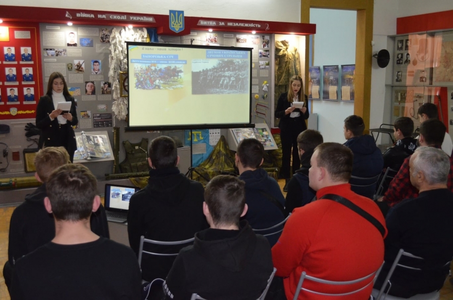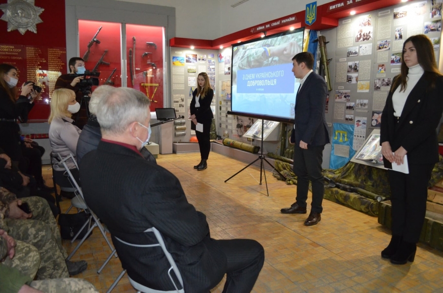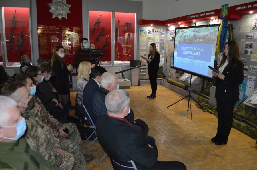 12 марта 2021 года, Мелитопольский городской краеведческий музей посетили учащиеся Мелитопольского профессионального аграрного лицея, представители "Союза участников АТО Мелитополя" и другие, на патриотическое мероприятие и собрание ко Дню украинского добровольца «Живет лишь тот, кто не живет лишь для себя...», чтобы познакомиться с историей формирования добровольческих отрядов, современными добровольческими батальонами и понять их значение для украинской армии. Именно на эту тематику были просмотрены два видео - фрагмента.