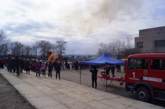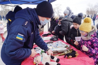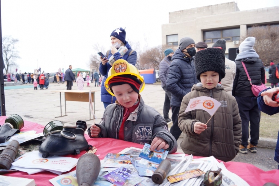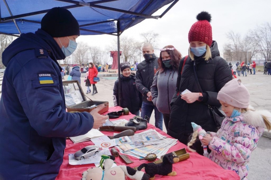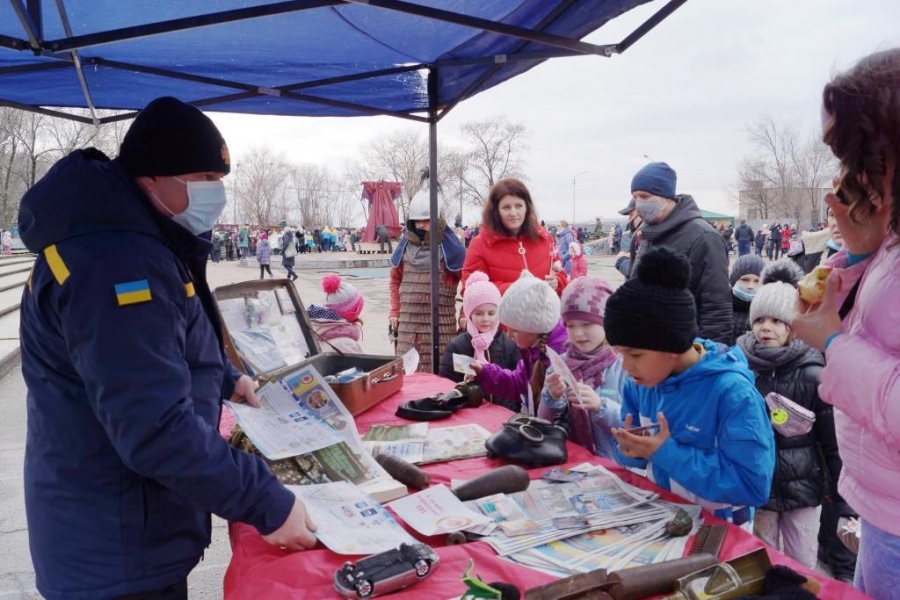 В разгар народных гуляний на Масленицу запорожские спасатели учили детей безопасности жизнедеятельности.
