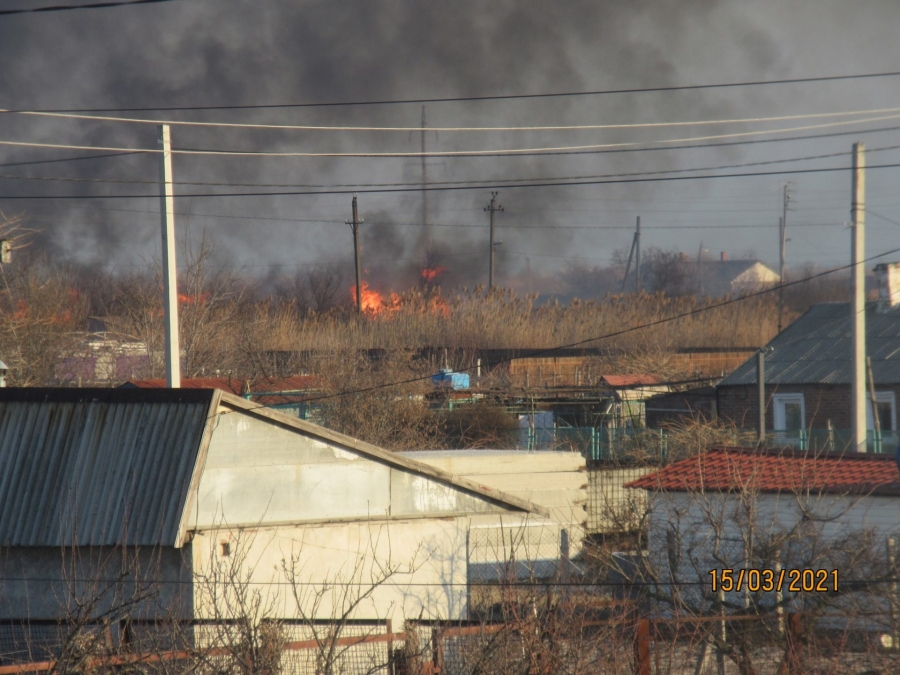 По информации очевидцев, сегодня, 15 марта, после полудня неизвестные подожгли камыш в разных местах в районе улиц Маяковского и Некрасова. На месте происшествия работают бойцы ГСЧС. Местные жители помогают пожарным бороться с огнем.