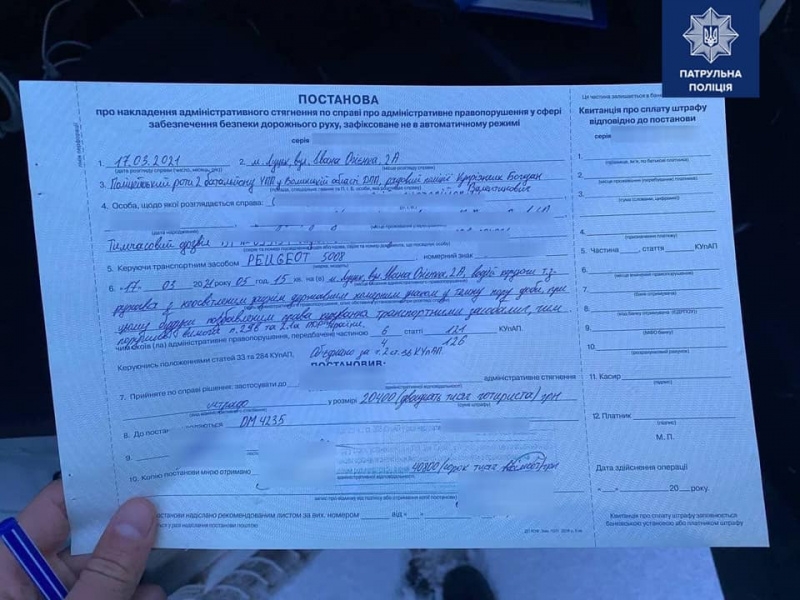 Второе правонарушение было зафиксировано в Ровно. Там патрульные остановили водителя, который управлял автомобилем, не получив водительское удостоверение.