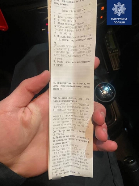 По его словам, в селе Чайки Киевской области патрульные остановили водителя транспортного средства, который ранее был лишен права управлять автомобилем. Согласно ч. 4 ст. 126 КУпАП ему выписали штраф в размере 20 400 гривен. Ранее за указанное административное нарушение предусматривался штраф - 510 гривен.
