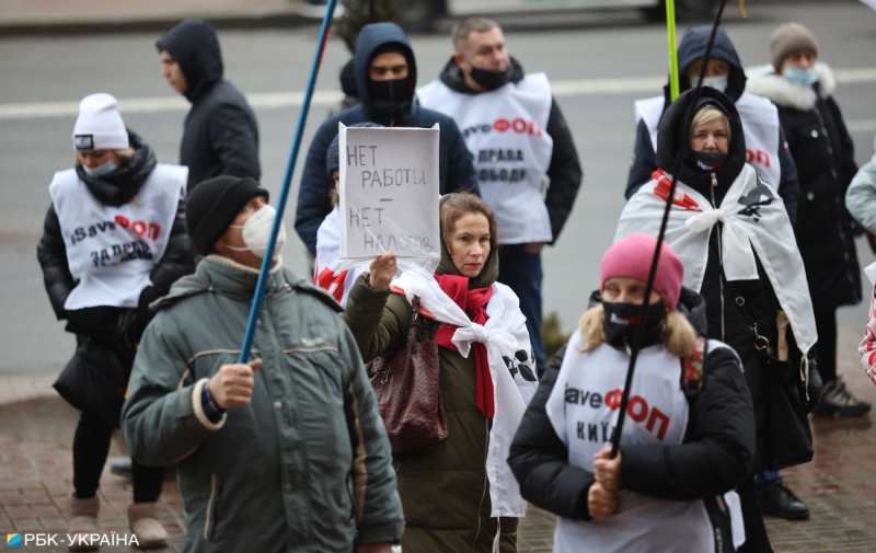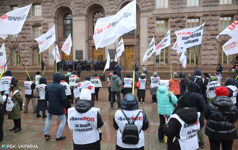 Сейчас несколько десятков человек протестуют под КГГА. Затем предприниматели планируют выйти на Майдан, а потом пойти под Кабмин и Офис президента.