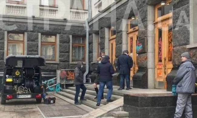 В Офисе президента начали отмывать разрисованный сторонниками Стерненко фасад