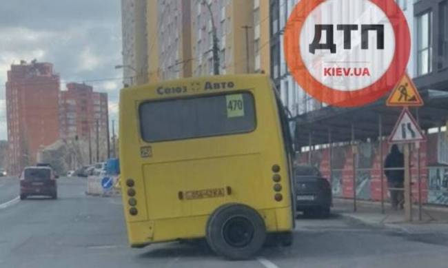 В Киеве не выдержала бешеного темпа карантина и потока пассажиров одна из маршруток. У транспортного средства на ходу отвалилось колесо.