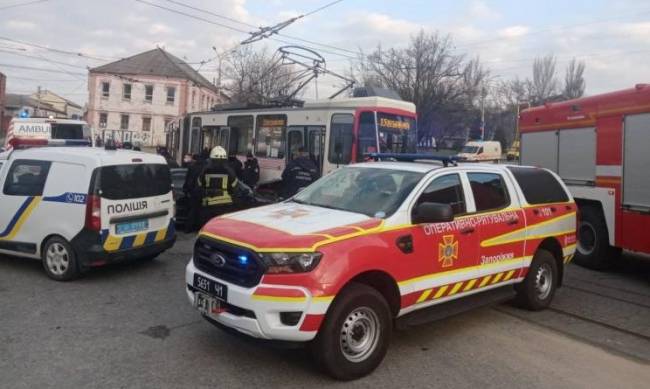 Последствия столкновения легковушки с трамваем в Запорожье устраняли спасатели (фото)