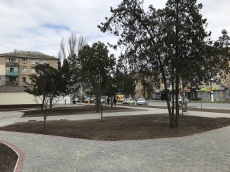 На этой неделе сотрудники ЧП "Вакарь" выровняли участок завезенным грунтом и вспушили верхний слой почвы. Вскоре в будущем сквере высадят кусты бирючины, клены, туи, березы и уложат рулонный газон. Последним этапом станет установка лавочек и урн, а также монтаж уличного освещения.