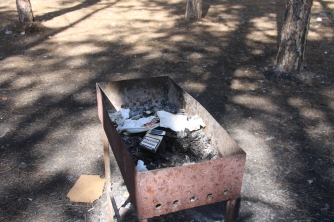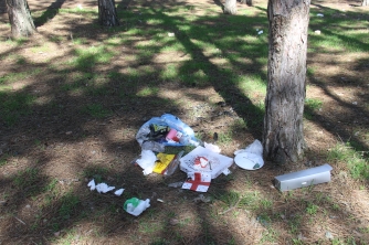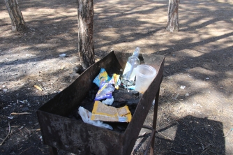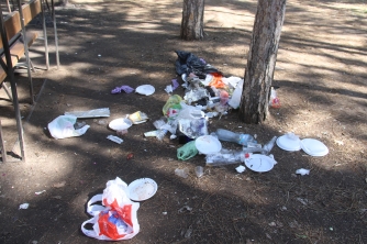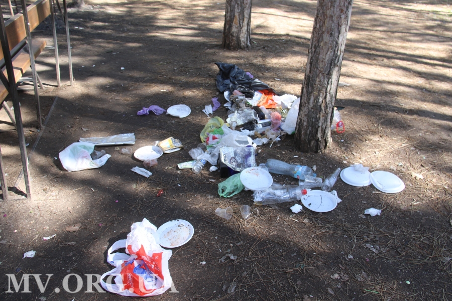За считанные дни отдыхающие успели превратить зеленую зону в свалку. Возле беседок, которые установили всего два года назад, разбросаны объедки, бутылки, коробки. Пакеты с мусором, оставленные под деревьями, разорвали бродячие псы. А вместо урн некоторые горожане решили использовать мангалы.