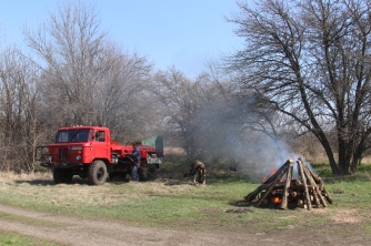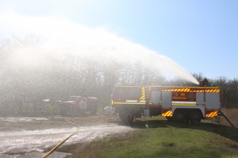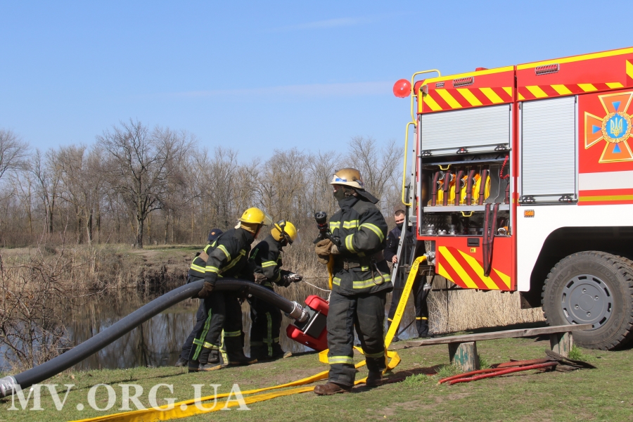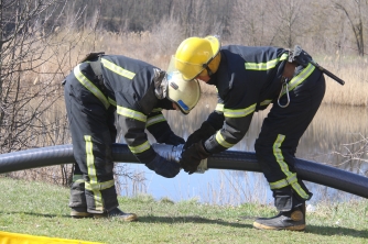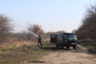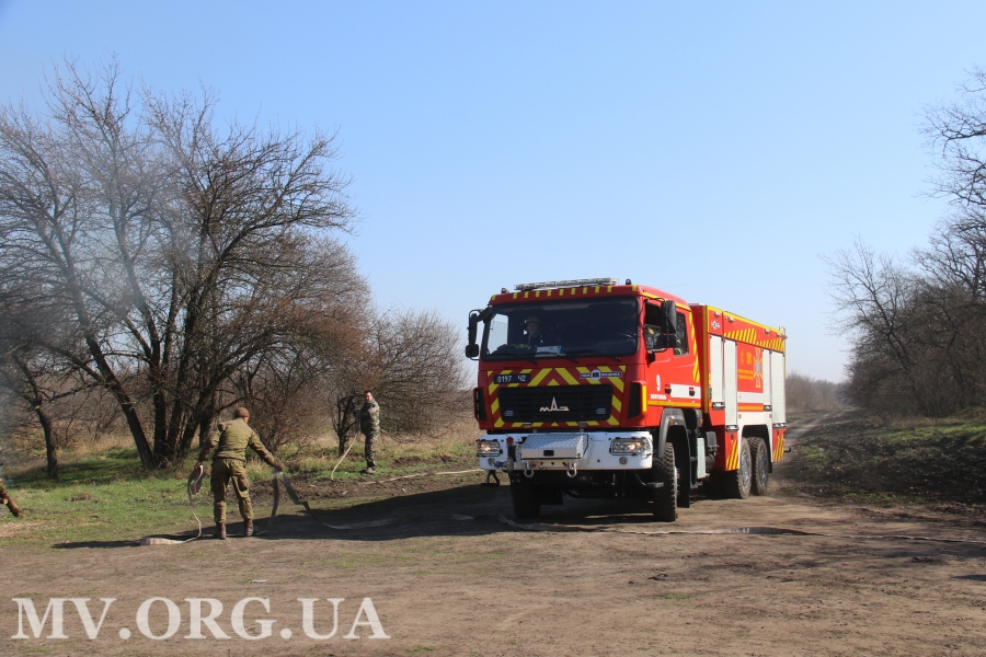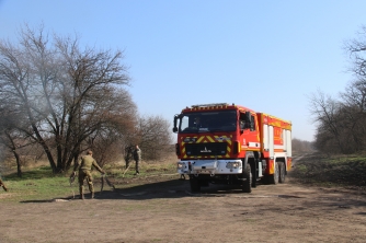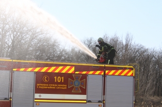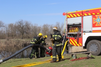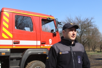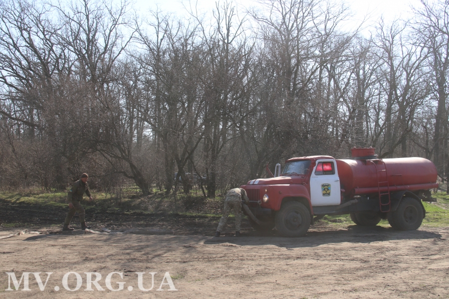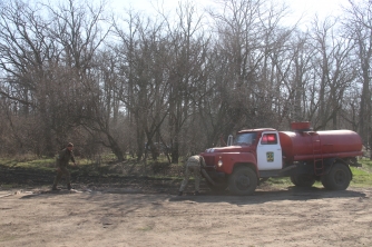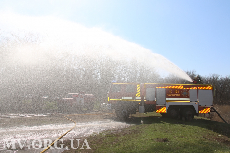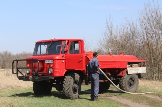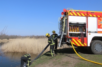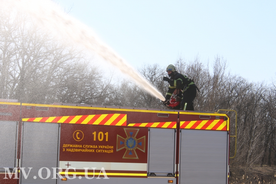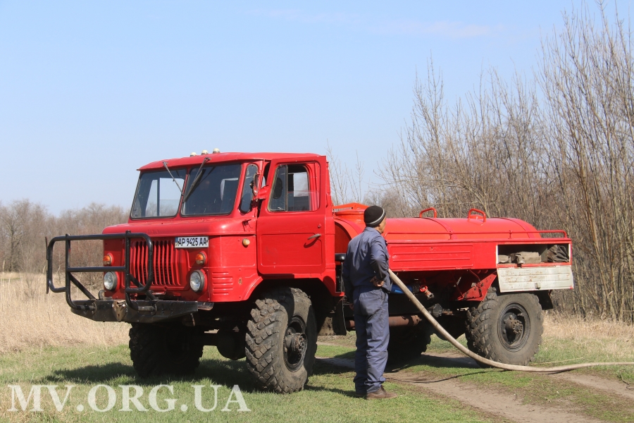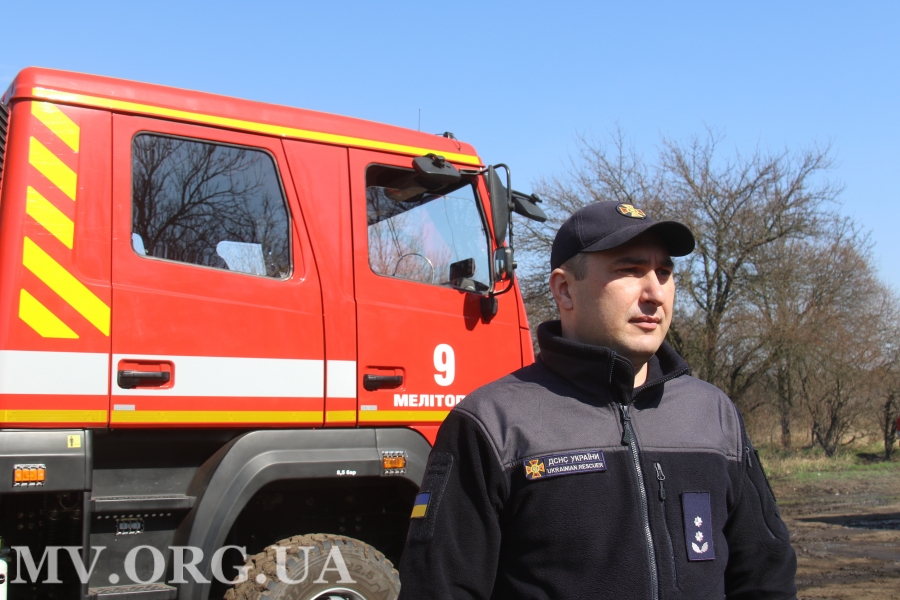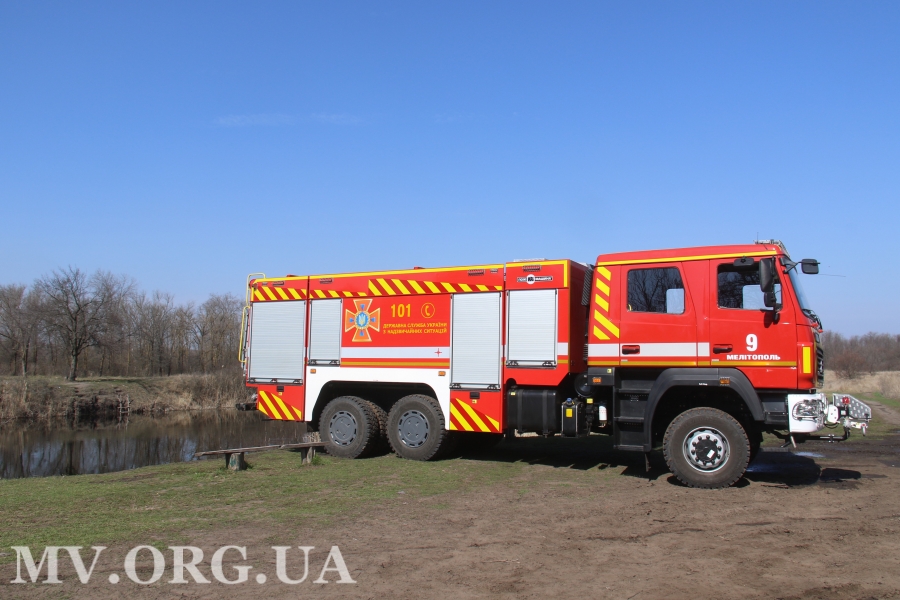 Особая роль в ликвидации пожара принадлежала спецтехнике, на которой работают мелитопольские спасатели. Автоцистерна, созданная на базе автомобиля МАЗ, вмещает в себя 8 тонн воды и 800 литров пенообразователя. Сегодня бойцы ГСЧС испытали в работе современную сетку для забора воды и лафетный ствол, которыми оснащен аварийно-спасательный автомобиль. По словам начальника Мелитопольского горрайонного управления ГСЧС Дмитрия Кучеркова, оборудование позволяет забирать воду для тушения пожара с поверхности водоема и подавать ее под большим напором к месту возгорания. Все это значительно облегчает работу бойцов ГСЧС и сокращает время тушения пожара.