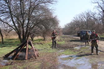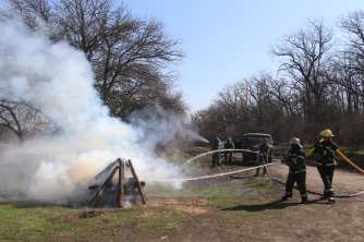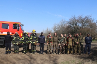 В ликвидации учебного пожара принимали участие 20 человек. Благодаря слаженной работе спасателей и лесников огонь был потушен в максимально сжатые сроки. В учениях были задействованы три единицы техники от лесоохотничьего хозяйства: ГАЗ-53, ГАЗ-66 и пожарный модуль, который базируется на территории Приазовского лесничества.