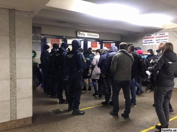На станции постоянные очереди в 20-30 человек. Люди в масках, но не придерживаются социальной дистанции. Некоторые ссорятся с нацгвардейцами.