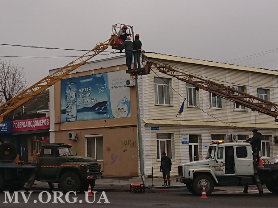 На проспекте демонтируют поврежденную электроопору (ФОТО)