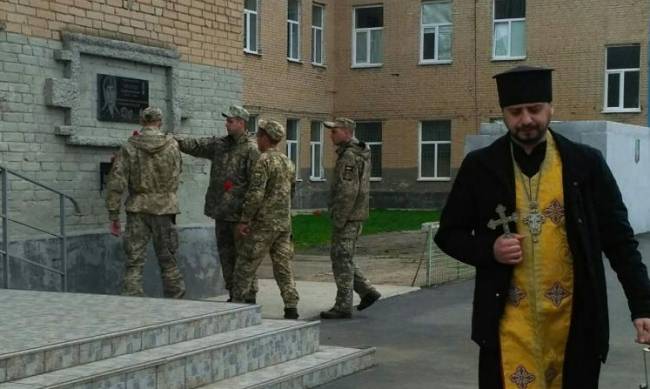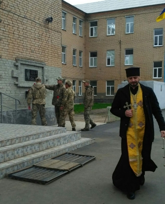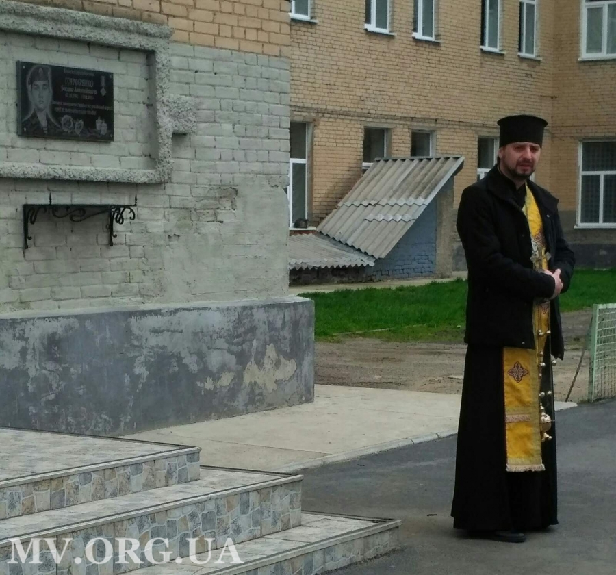 К мемориальной доске пришли сослуживцы парня, чтобы вспомнить о нем и поприсутствовать на молебне, который отслужил военный капеллан Мелитопольского округа протоиерей Игорь.