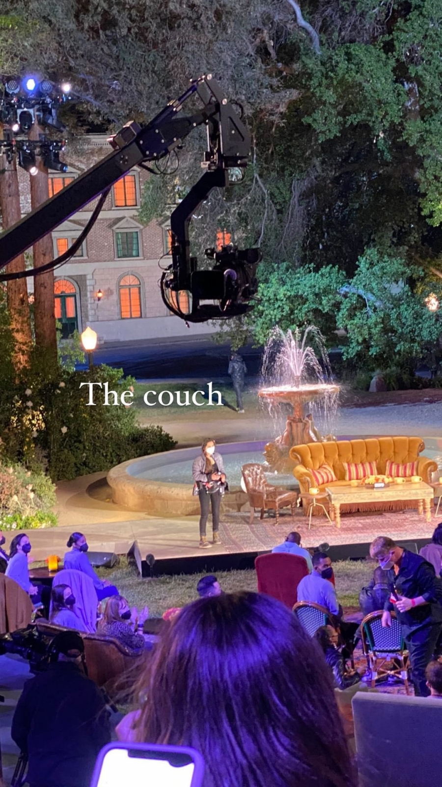 Известно, что сьемки проходили в формате разговорного ток-шоу. На кадрах можно увидеть легендарный диван, на котором главные герои "Друзей" собирались, чтобы попить кофе и посплетничать. Позади него находится знаменитый фонтан из заставки сериала. Съемки спецвыпуска стартовали в прошлые выходные.