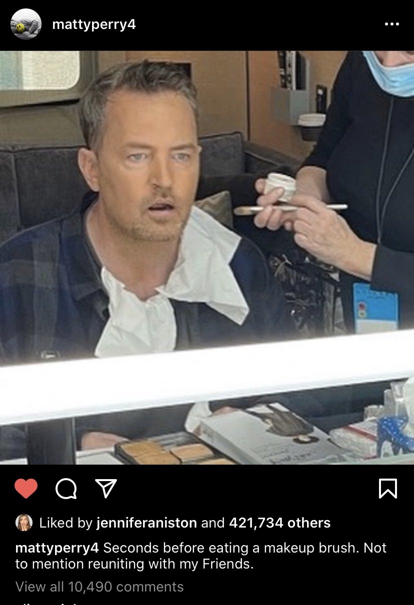Об этом на своей странице в Instagram объявил один из главных актеров Мэттью Перри. Он опубликовал фотографию с процесса гримирования, но потом быстренько удалил изображение.