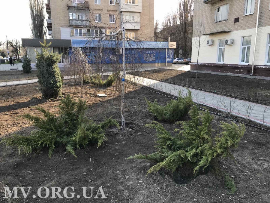 Еще в прошлом году рабочие выложили пешеходные дорожки тротуарной плиткой, смонтировали систему полива и разбили клумбы . А недавно на участке, который находится за остановкой общественного транспорта "Садстанция", высадили семь серебристых кленов, по три елки и березы, а также горизонтальные можжевельники.