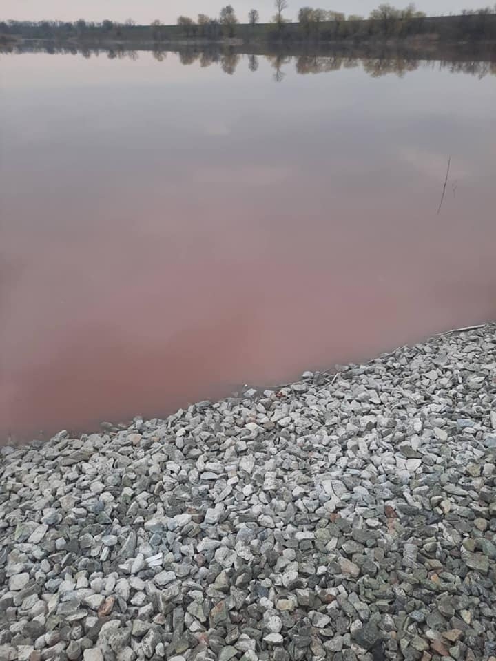 В Днепропетровской области пруд стал цвета крови из-за химических отходов, сливаемых в водоем. Этим занимаются местные предприятия.
